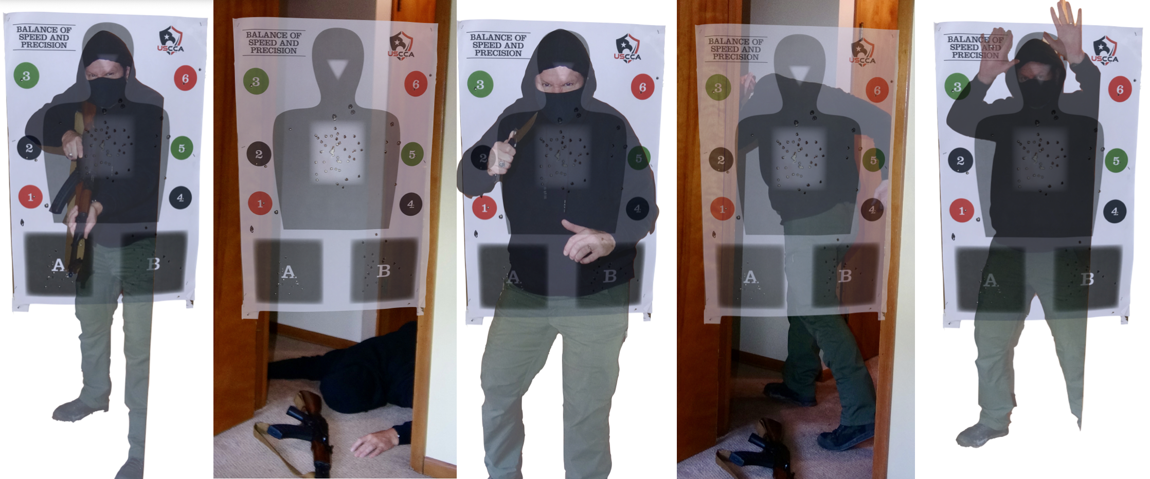 So, firing one shot, two shots, three shots, or even five shots every time we train, using prescribed round counts during strings of fire is really conditioning us to stop shooting after “round #1, 2, 3, 4, or 5”… not after stopping the attack. “Two to the chest, one to the head” is conditioning us to transition to a head shot after recognizing shot #2 to the chest has fired. It is not conditioning us to find another target zone to shoot upon recognizing that the attacker is not stopping their attack. See the difference?